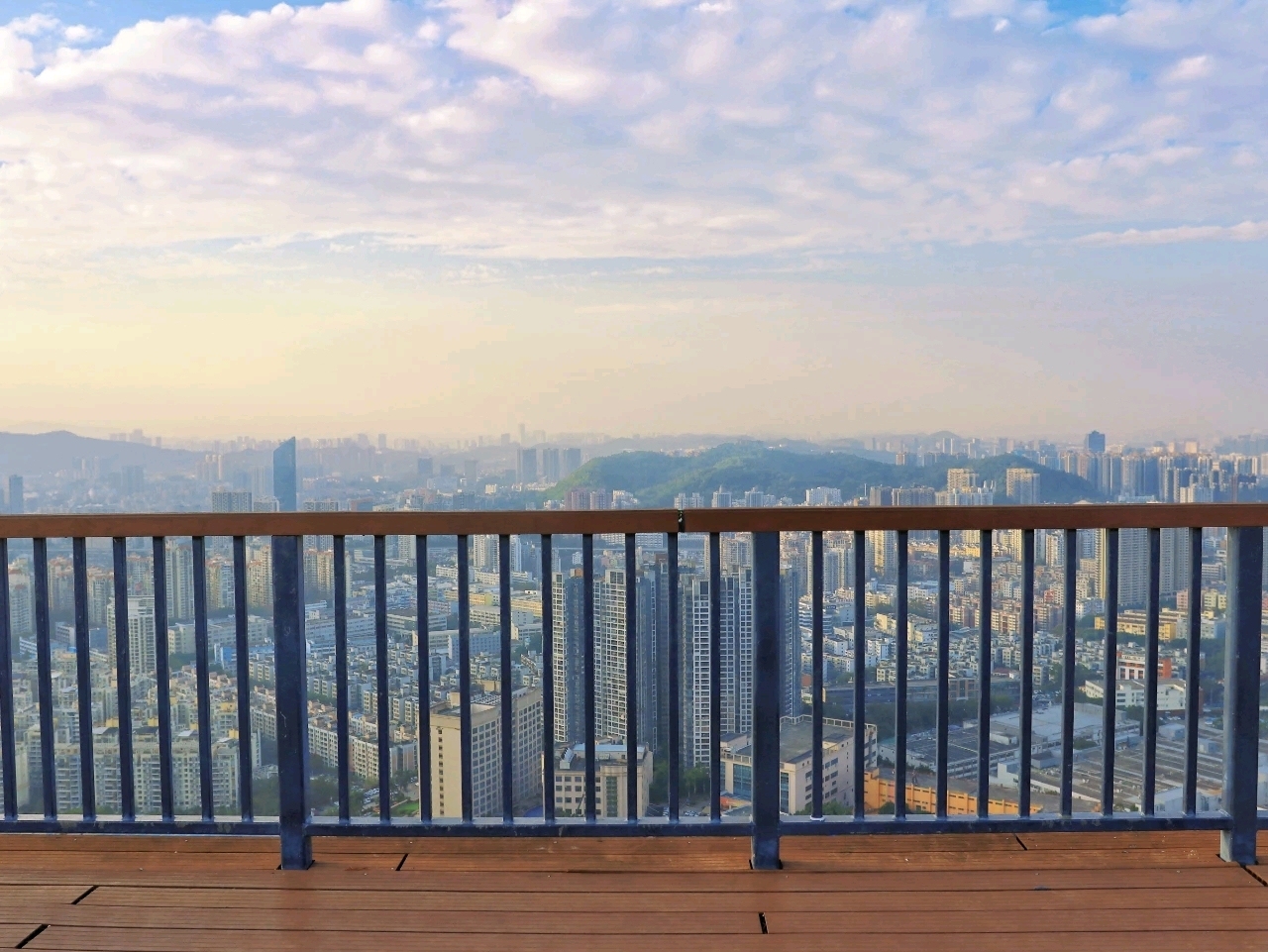 爬完小长城,往上走到山顶广场,目下会豁然豁达。深圳水库的粼粼波光、梧桐山的层峦叠翠,再加上弘法寺的飞檐翘角,山水相映的画面,让东谈主一下子联思到 “千岛湖” 的诗意景致。这里激烈提议拍一段视频,镜头缓缓从肩膀往前推,扫过山水城林,画面超带感。