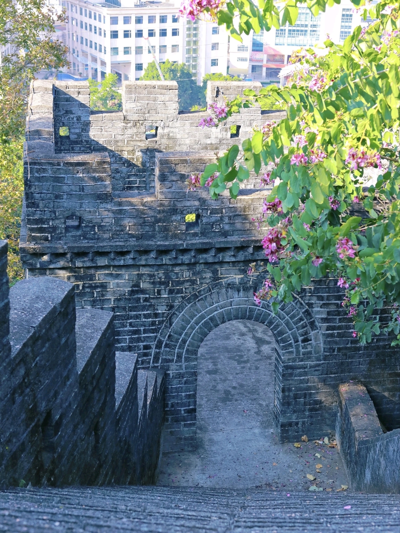 看成南湾街谈的标记性公园,求水山藏着太多惊喜。380米长的仿古长城沿山而建,炊火台、垛口、青石板道路一应俱全,站在城墙之上,眼下是南湾的火食街景,远方是杂沓的城市建造,一霎解锁“南湾之窗”绝佳视线。