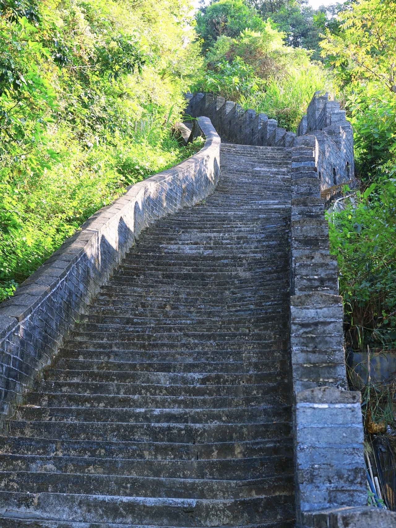踏上复刻版的石板道路,步谈向着山顶弯曲伸展,前后望不到绝顶,一霎有种 “穿越到八达岭” 的错觉。在步谈上减轻行走,或是回眸含笑,或是遥看山景,又或是一步步朝上登高,每一个动作齐超有镜头感,妥妥的 “假装在长城” 系列。