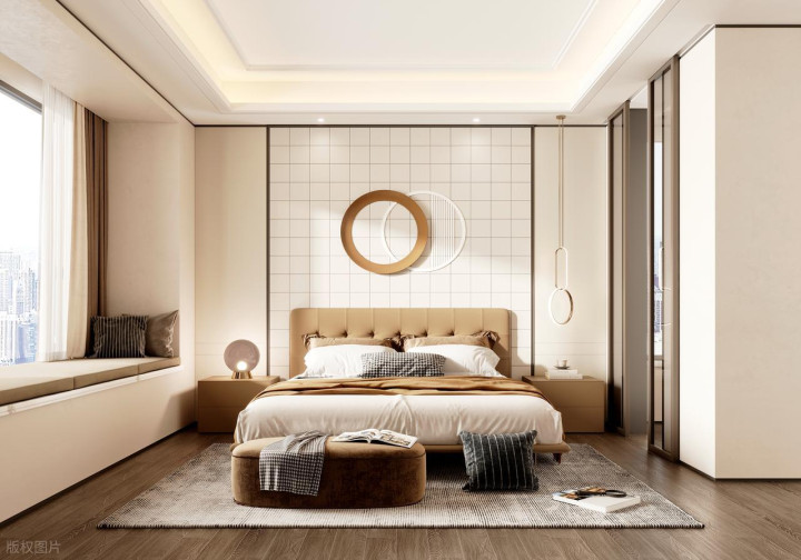 冷漠主产品(床、衣柜)尽量选实木或优质板材,耐用且显质感,小件或禁闭品可融入金属、藤编、玻璃等元素,增多灵动感。