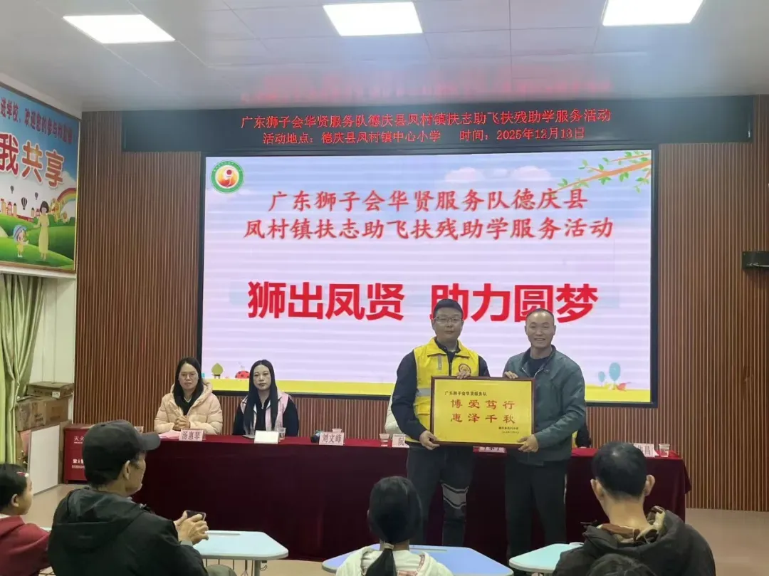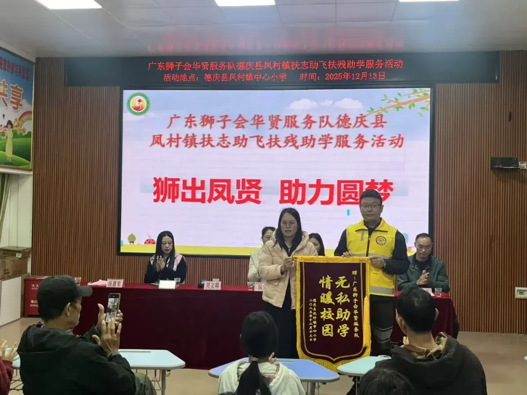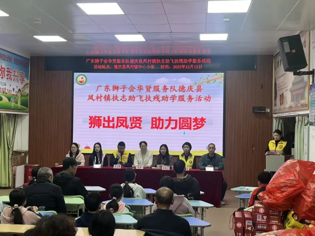 12月13日上昼,广东狮子会华贤管事队“狮出凤贤·助力圆梦”爱心扶残助学管事行径在德庆县凤村镇中心小学一楼录播室举行。